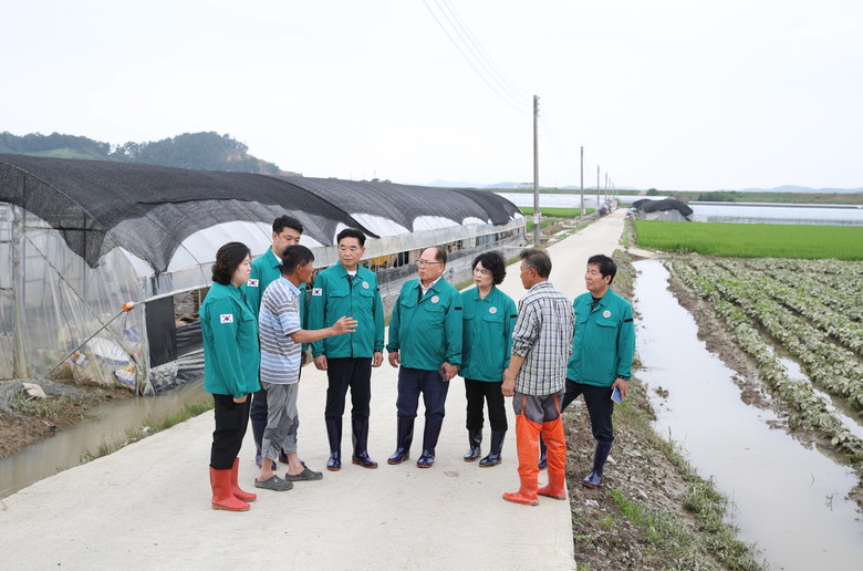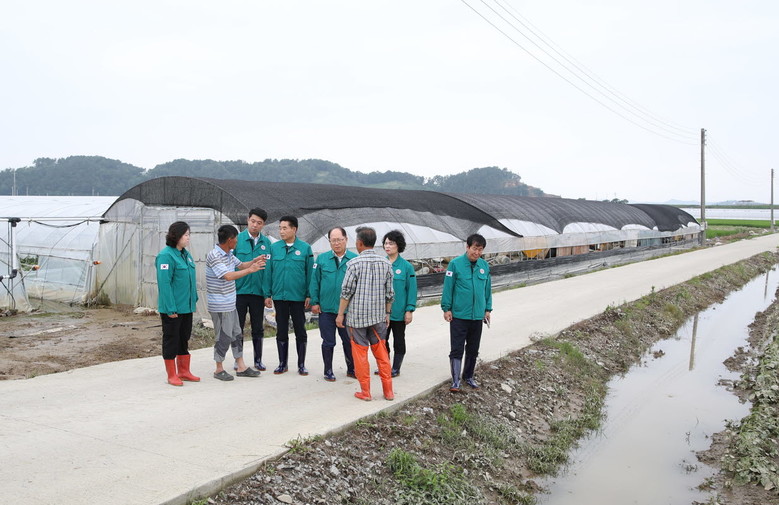 피해농가들은 학교급식 친환경 농작물과 탑마루 수박을 재배하는 곳으로 의장단은 집중호우로 인한 피해실태를 점검하고 피해복구와 추가 피해 방지 대책 등을 논의했다.