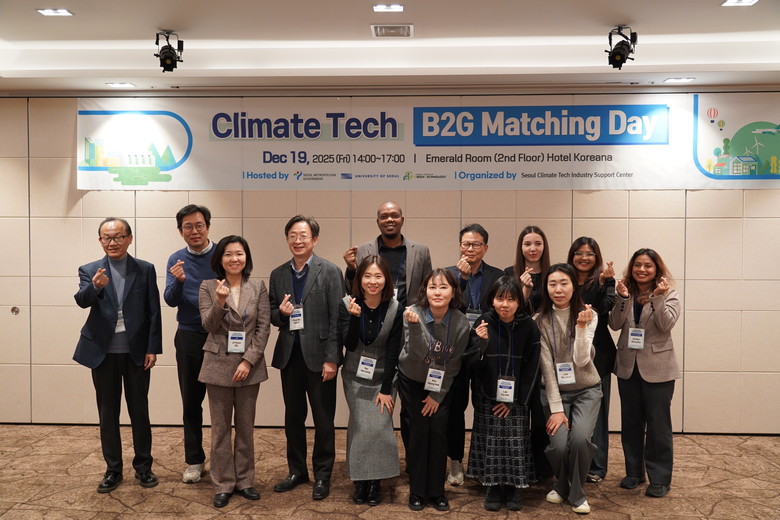 [서울 세계타임즈=송민수 기자] 19일(금) 서울시는 서울시립대학교(총장 원용걸), 국가녹색기술연구소(소장 이상협)와 공동으로「기후테크기업 해외진출 지원을 위한 B2G 매칭데이」를 개최했다. 서울시는 이번 행사가 시의 국제 협력 기반을 활용해 기후테크 분야의 기술·정책 교류를 확대하고, 실질적인 민관 협력 모델을 발굴하기 위해 마련했다고 밝혔다.