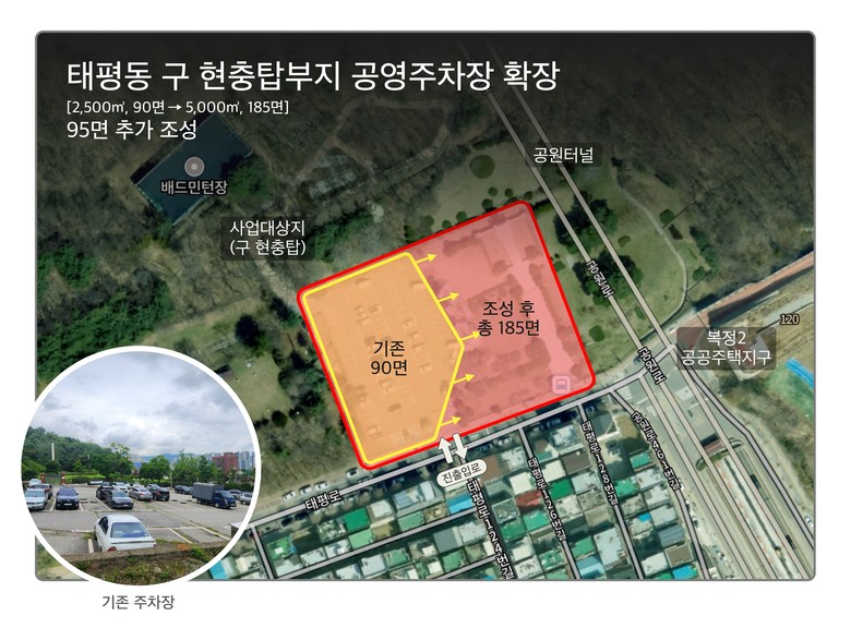 성남시는 2025년 5월 현충탑을 성남시청 근린공원으로 이전 조성한 이후, 해당 부지 활용 방안을 검토하는 과정에서 지역 여건과 주민 수요를 종합적으로 고려해 태평동 일원 주택(다세대·다가구) 밀집지역의 주차난 해소를 위한 임시 공영주차장 조성사업을 추진하게 됐다.
