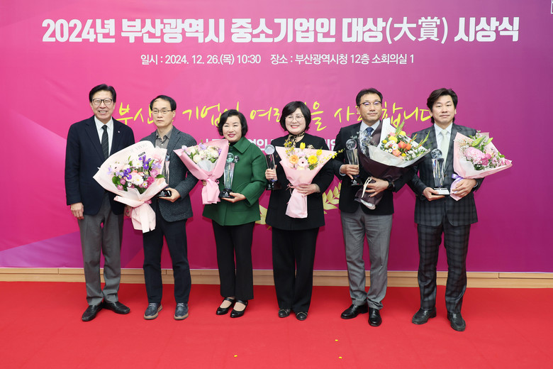 ◈ 수상자에게는 중소기업인 대상 표창과 트로피를 수여하고 ▲시 중소기업 육성·운전자금 우대 지원 ▲지방세 세무조사 유예 ▲시 공영주차장 및 광안대교 무료 이용 등 다양한 혜택을 3년간 지원 [부산 세계타임즈=이용우 기자] 부산시(시장 박형준)는 오늘(26일) 오전 10시 30분 시청 소회의실1에서 「2024년 부산광역시 중소기업인 대상 시상식」을 개최한다고 밝혔다.