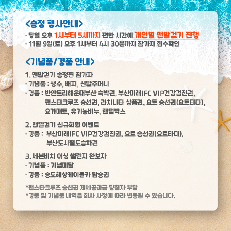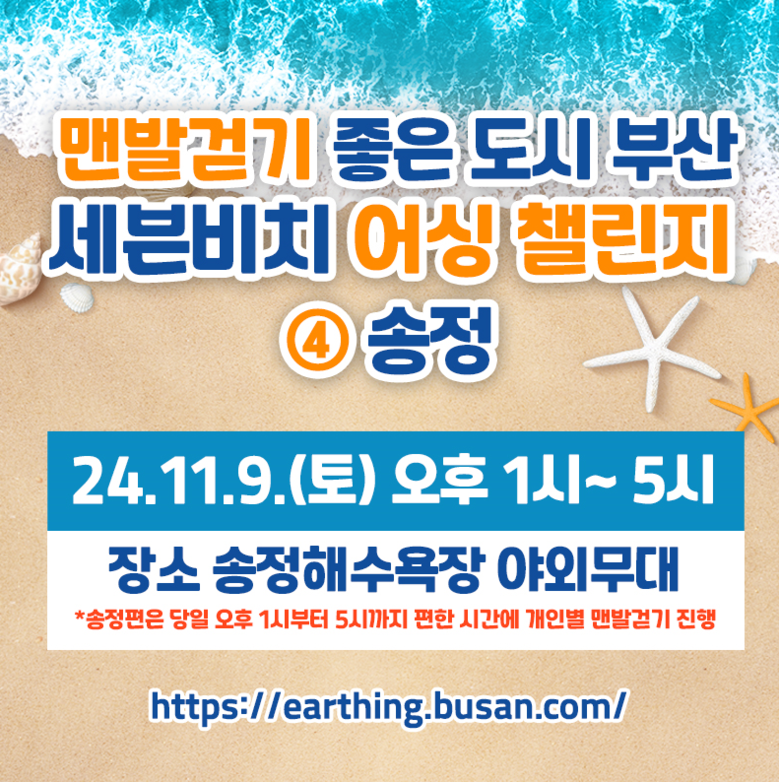 참가 신청은 세븐비치 어싱 챌린지 누리집(earthing.busan.com)을 통해 사전 접수로 진행 중이며, 참가비는 무료다.