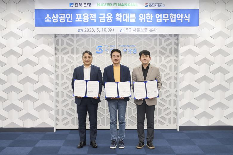 유광열 SGI서울보증 대표이사는 “최근 高금리, 高물가, 경기침체 우려 등으로 소상공인들이 자금운용에 많은 어려움을 겪고 있는 만큼 네이버파이낸셜 및 전북은행과 업종을 넘은 협업을 통해 사장님들에게 희망을 더하고자 한다.”며,“SGI서울보증은 소상공인들을 위한 맞춤형 금융 서비스를 제공함으로써 ‘국민보험사’로서의 사회적 역할을 더욱 강화할 것”이라고 밝혔다.