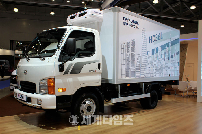 [세계타임즈 이영진 기자]현대자동차가 지난 4일 러시아 모스크바에서 열린 '2017 모스크바 국제상용차 전시회'에서 수출 전략형 중소형 트럭 'HD36L'을 공개하며 러시아 시장 본격 공략에 나섰다.