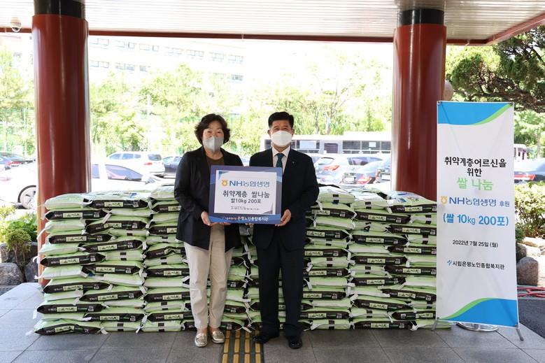 이번에 기부한 쌀은 총2,000kg으로 은평노인종합복지관에서 관할 지역에 거주하는 독거노인 및 취약계층에 전달될 예정이다. 더불어 NH농협생명은 사회복지법인 행복창조에도 2,000kg의 쌀을 함께 기부했다.