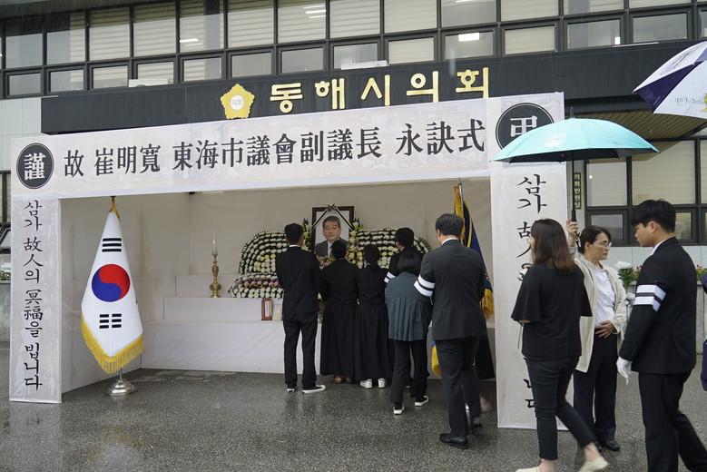 이날 오전 8시, 동해시의회 앞에서 진행된 영결식은 묵념, 약력보고, 추도사와 조사, 헌화 등의 순으로 약 40분간 치러졌다.