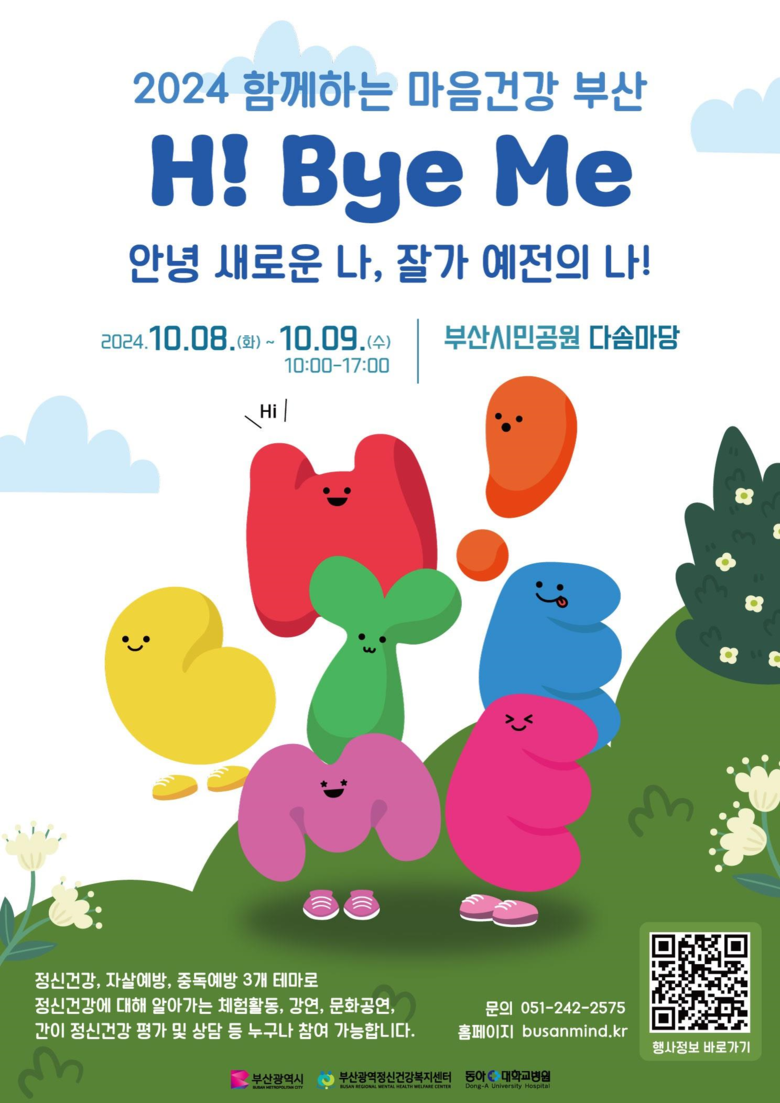 ◈ 10.8.~10.9. 부산시민공원 다솜마당에서 「2024 함께하는 마음건강 부산」 개최… '안녕 새로운 나, 잘가 예전의 나!(Hi Bye Me)'를 표어(슬로건)로 진행