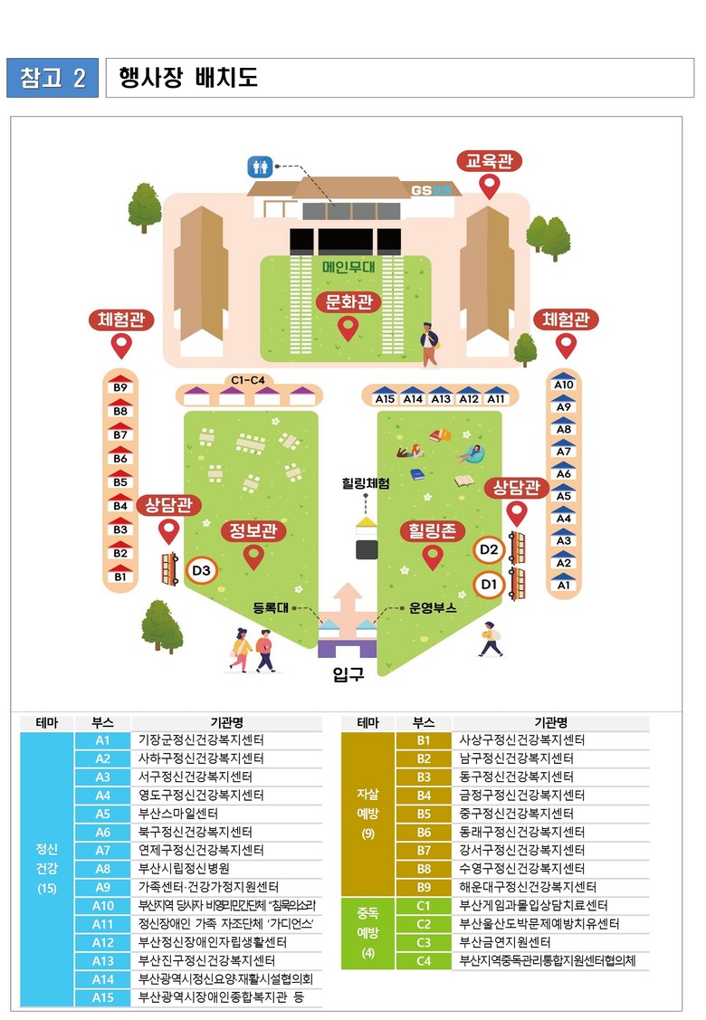 ◈ 자살예방 및 정신건강의 날 기념식과 ▲체험관 ▲상담관 ▲정보관 ▲교육관 ▲문화관, 5개의 주제관 운영… 정신건강복지센터 등 유관기관 34곳 참여