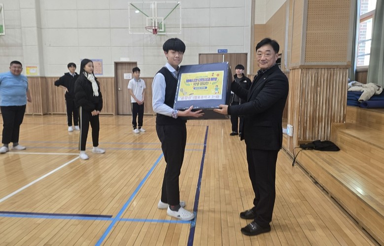 공모 주제는 ▲구기종목 경기 중 사고 예방을 위한 실천 방안 ▲안전한 체육관 시설 사용법으로 학급별(단체)로 30초 안팎의 짧은 동영상(숏폼)을 제작해 출품했다. 심사 결과 13개 학급에 우월상을 수여했고 학급 간식비를 지원했다. 또 경남교육청 유튜브 채널에 게시한 우월상 수상작 중 ‘좋아요’를 많은 받은 3개 학급에는 공감상을 주었고 시상품으로 무릎보호대를 추가로 지원하였다.
