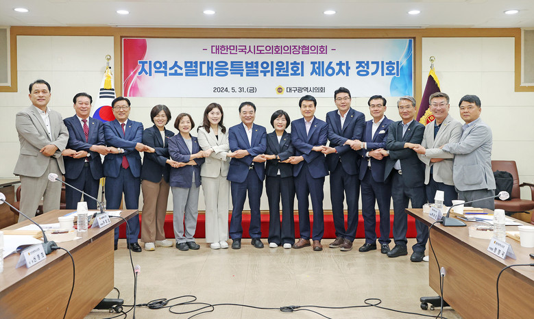 [대구 세계타임즈=한윤석 기자] 대구시의회(의장 이만규)는 31일(금), 시의회 3층 회의실에서 대한민국시도의회의장협의회 지역소멸대응특별위원회 제6차 정기회를 개최했다.
