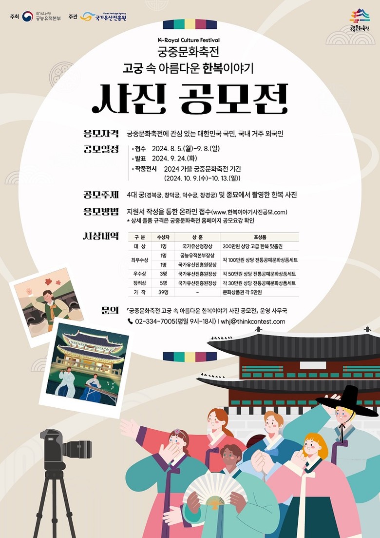 [국가유산청 궁능유적본부=세계타임즈 이상호 기자] 국가유산청 궁능유적본부(본부장 이재필)는 국가유산진흥원(원장 최영창)과 지난 8월 5일부터 오는 9월 8일까지 ‘고궁 속 아름다운 한복 이야기’를 주제로 한 사진 공모전을 개최한다.