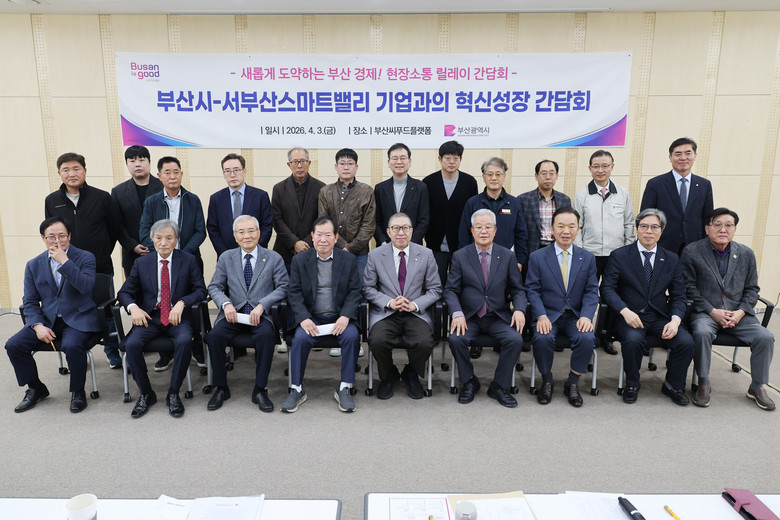 ◈ 시, 46년 만에 전국 최초로 산업단지 유치업종 체계를 전면 재설계하는 구조 개편 추진 및 2026년 문화선도산단 공모에 응모해 ▲문화 ▲예술 ▲청년이 활력이 결합된 미래형 복합 공간으로 재도약 할 계획 [부산 세계타임즈=이용우 기자] 부산시(시장 박형준)는 오늘(3일) 오후 2시 30분, 사하구 부산씨푸드플랫폼 대회의실에서 서부산스마트밸리 기업과 함께 「제6차 기업 혁신성장 릴레이 간담회」를 개최한다고 밝혔다.