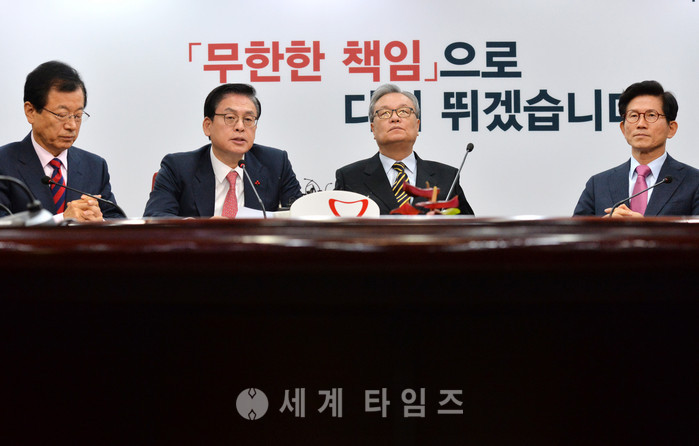 새누리당 이현재(왼쪽부터) 정책위의장, 정우택 원내대표, 인명진 비상대책위원장, 김문수 비상대책위위원이 12일 오전 서울 여의도 새누리당 당사에서 비상대책위원 및 주요당직자회의를 하고 있다. 2017.01.12.