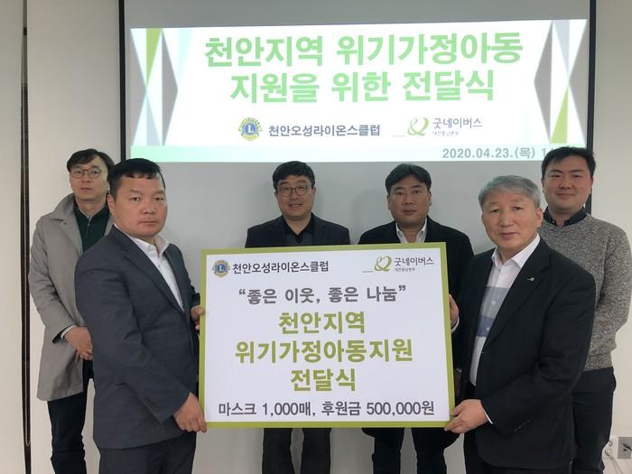 [충남=세계타임즈 이현진 기자] 23일(목), 굿네이버스 대전충남본부(본부장 신범수)는 천안오성라이온스클럽(회장 김재일)로부터 마스크 1천장 및 후원금 50만원을 전달 받았다.
