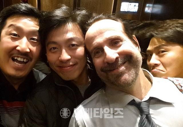 사진 속 현봉식, 박상현, 피터 스토메어, 오대환 등 영화 '브이아이피' 출연진이 밝은 표정으로 카메라를 응시하고 있어 눈길을 끈다.