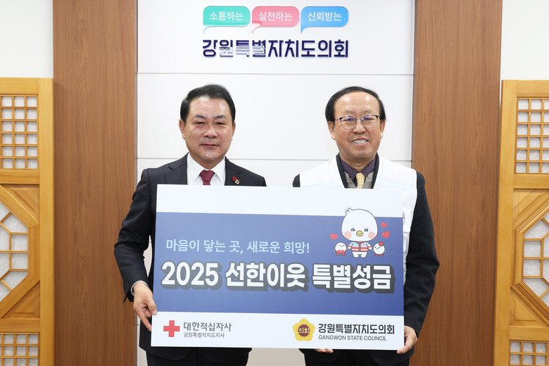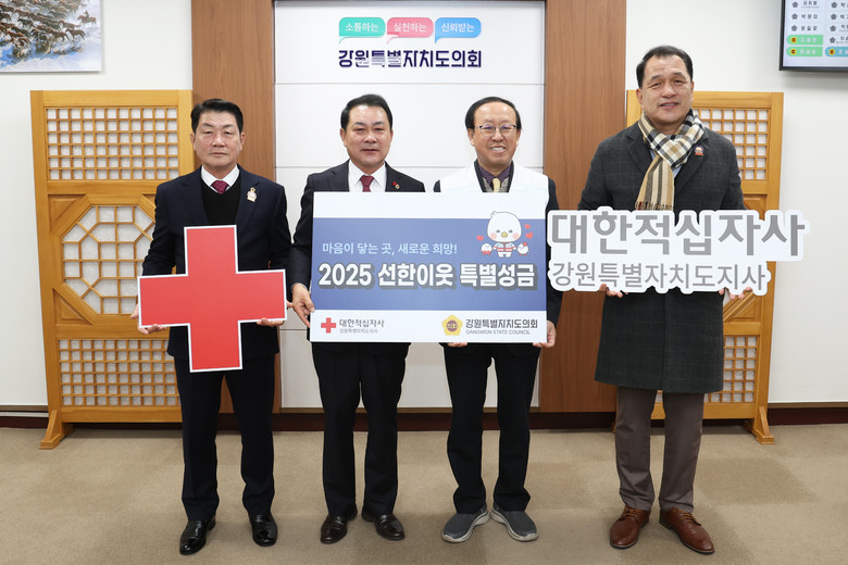 이어서, 개최된 특별회비 전달식은 강원지역의 재난구호, 취약계층 지원, 사회복지 사업 등 지역사회를 위한 나눔과 연대 정신을 실천하기 위한 것으로, 강원특별자치도의회는 특별회비 3백만 원을 대한적십자사에 전달했다.