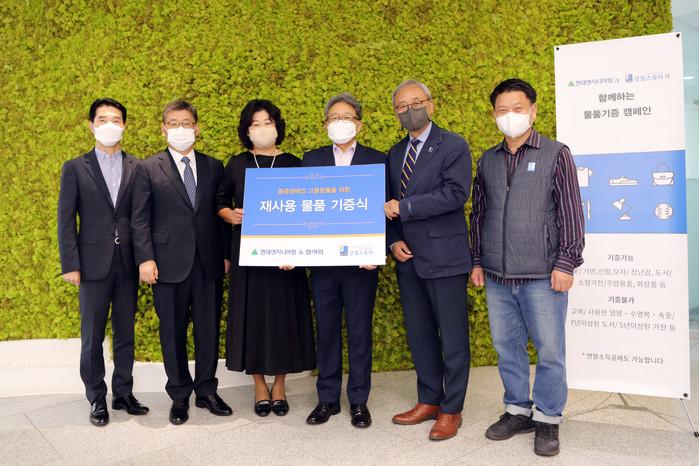 19일(화) 진행된 물품 전달식에는 현대엔지니어링 김창학 사장, 밀알복지재단 굿윌본부 한상욱 본부장, 현대엔지니어링 허승현 구매본부장, 현대엔지니어링 협력회 회장 한혜숙 엠케이지 대표이사 등 관계자들이 참석해 현대엔지니어링 및 협력사 임직원이 기부한 물품들을 전달하는 시간을 가졌다.