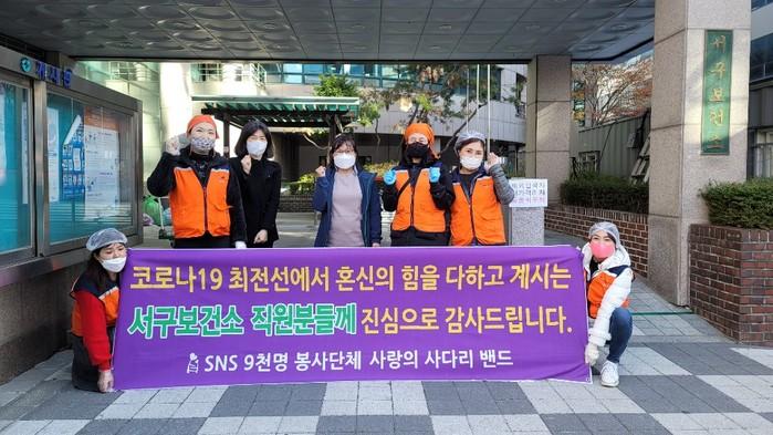 서구보건소 김은희 감염병관리팀장은 “오늘 사랑의 사다리 밴드 봉사단체에서 맛있는 통닭을 지원해 주어서 큰 힘과 위안이 된다.”면서 “서구보건소는 코로나19가 하루속히 종식될 수 있도록 최선의 노력을 다하겠다.”고 말했다.