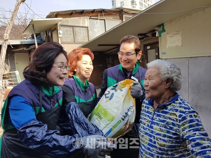 [세계타임즈 심귀영 기자]나누고 베풀고 봉사하는 그룹 한옥순 회장은 서울특별시 성북구 정릉3동 도광사 주변에서 봄맞이 ''쌀 20Kg 3개 ,식품 3개 연탄 600장'' 이웃사랑 봉사 펼쳐~ 이번 봉사활동은 늦 겨울나기에 어려움을 겪고 있는 에너지 취약계층에 조금이나마 따뜻한 겨울을 보낼 수 있도록 '사랑의 쌀, 식품 연탄을 나눔을 하고 직접 배달하며 온정을 나누는 활동을 서울시 성북구 정릉동에서 펼쳤다.
