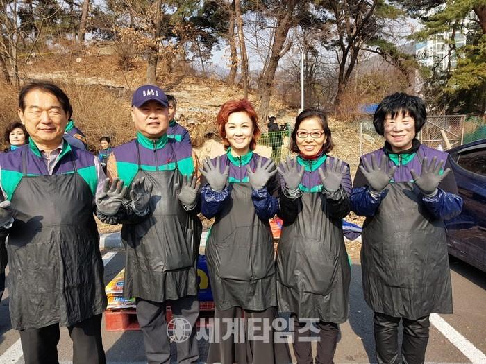 한옥순 회장은 배우 김혜선 (주) 벨라랩 성정민 대표 후원으로 유승희 성북구 국회의원 배우 김혜선 이차용 주) 에코오가닉 코리아 대표 성정민 (주) 벨라랩 대표 한동균 Gs안과 행정원장 서재균 대한적십자 홍보대사 한영신 충청남도의회 의원 아리랑 춘향이연도흠 구국실천국민연합 상임대표 연도흠 한창대 애국 사랑회 총재 이기창 (사) 한국도농상생연합회 회장 등 함께 참석해 정성으로 준비한 '사랑의 쌀, 식품, 연탄이 봄을 맞이할 어려운 이웃들에게 조금이나마 도움이 되길 바란다"