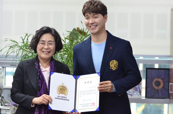 인기 방송인 박수홍씨와 가수 김지원씨가 “2019대한민국교육문화체육공헌대상”을 알리는 홍보대사로 위촉됐다.