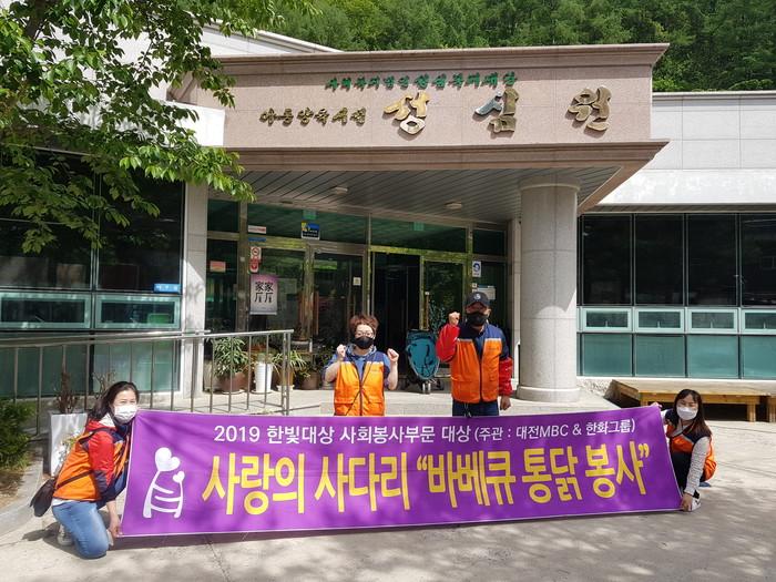 [대전=세계타임즈 이채봉 기자] 대전시 SNS 9천명 봉사단체 사랑의 사다리 밴드(리더 이정제)는 지난8일 오후3시, 동구 하소동에 위치한 섬심원 아동보육시설에서 바비큐 통닭 50마리 봉사로 우리 사회의 따뜻한 사랑을 실천 하였다.