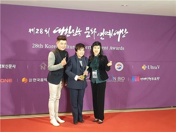 가요부문 신인상을 수상한 가수 남진수씨는 이날 "이렇게 큰 무대에서 신인상을 받게 될 줄은 몰랐다"며 "TBN 한국교통방송 '안효진(본명 안선영)의 한밤의 교차로' MC이자 작사가에게 전통 트로트의 좋은 작품을 받았는데 디렉터까지 맡아준데 대한 또 한 번의 감사하다"고 수상 소감을 전했다.