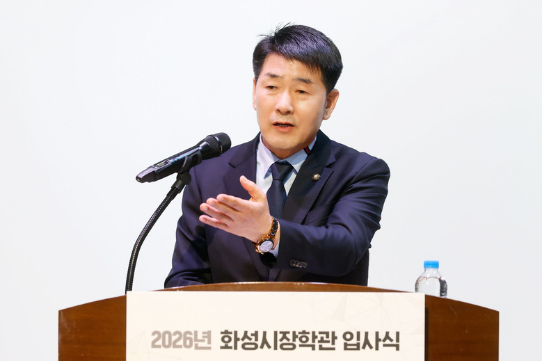 [화성시 세계타임즈=송민수 기자] 화성특례시의회(의장 배정수)는 14일 동탄다원이음터 4층 대강당에서 열린 「2026년 화성시장학관 입사식」에 참석해 새롭게 장학관 생활을 시작하는 입사생들을 축하하고 격려했다.