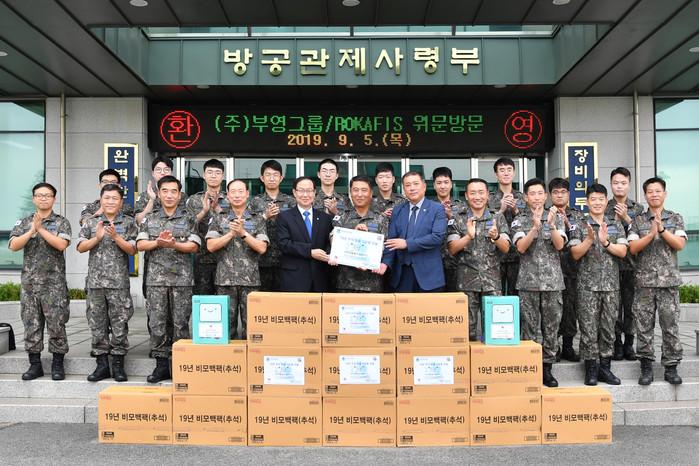 지난 5일 부영그룹 이중근 회장을 대신해 공군방공관제사령부를 방문한 부영그룹 윤택훈 비상계획관은 “추석 명절에도 전선에서 고생하는 장병들에게 고마움을 전달하기 위해 선물을 준비했다”면서 “장병들의 노고에 비하면 작은 선물이지만, 정성이 담긴 위문품을 받고 즐거운 명절이 되었으면 좋겠다”고 말했다.