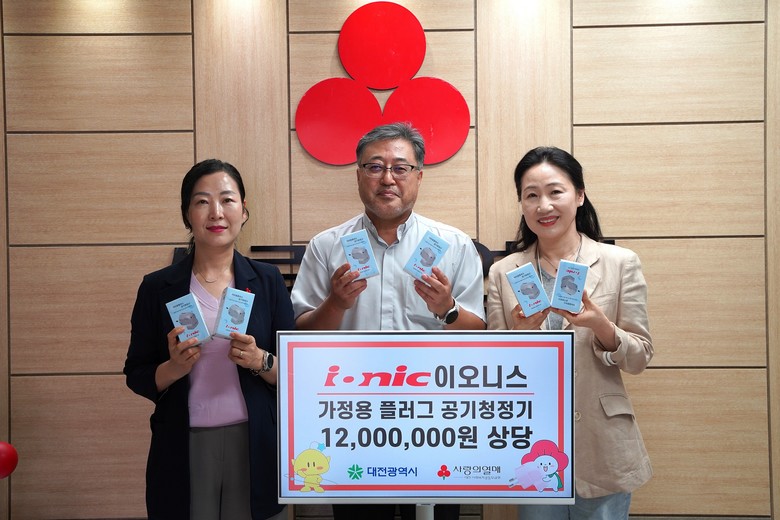 [대전 세계타임즈=이채봉 기자] ㈜이오니스는 8일, 대전사회복지공동모금회를 방문해 플러그형 공기청정기 350대(1,400만 원 상당)를 쪽방상담소(조부활 센터장)에 기탁 했다. 앞서 7월7일 저소득층 대상 1만 2,000대(3억 원 상당) 기탁에 이어 두 번째다.