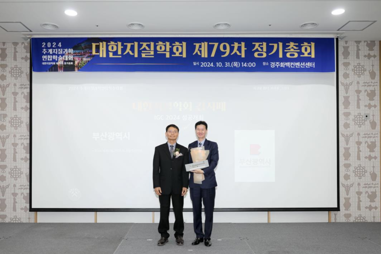 ◈ 10.31. 14:00 경주 화백컨벤션센터에서 '제79차 대한지질학회 정기총회' 개최… 대한지질학회가 부산시에 감사패 수여