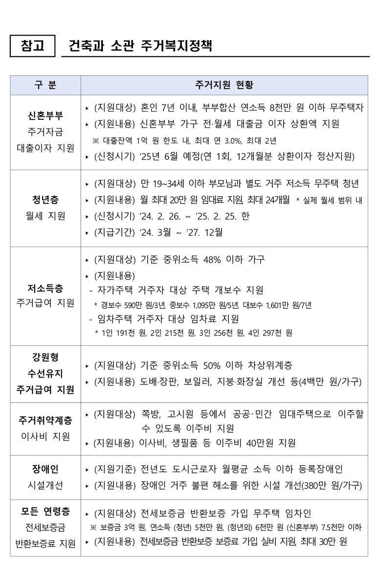 - 2025년 주거복지 예산 1,035억 원 편성 (국비 848억 원 확보)