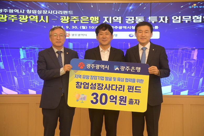 이번 협약에 따라 광주은행은 광주시가 조성하는 창업펀드에 30억원을 출자하기로 했다.