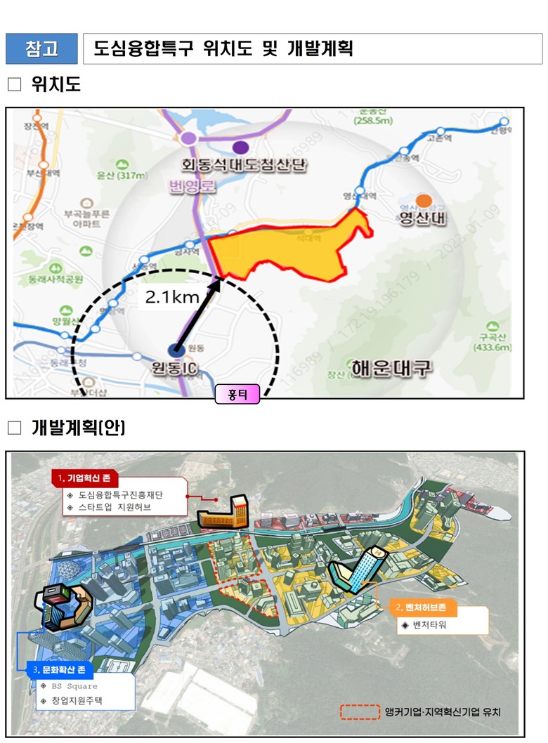 특히, 이번 특구 최종 지정으로 ❶기반 시설(인프라)이 갖춰진 도심에 ❷직주락(직장, 주거, 오락) 균형을 목표로 ❸정부 예산 지원과 범부처 집중 지원을 통해 청년과 기업이 매력을 느끼는 공간으로 구축한다는 계획이다.