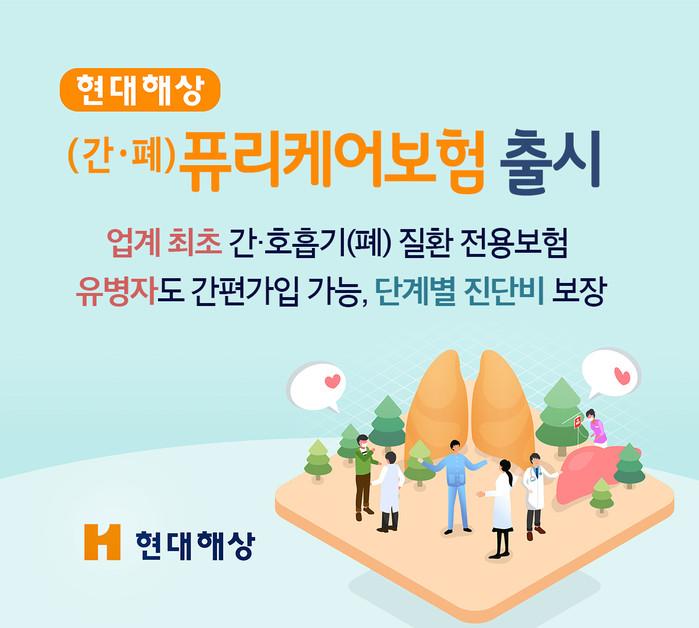 현대해상이 2022년 새해 처음으로 선보이는‘(간·폐)퓨리케어보험’은 업계최초 신체 정화기능(purify)을 담당하는 간·호흡기(폐) 질환 전용보험으로, ‘몸 속의 해독제’기능을 하는 간과‘몸 속의 공기청정기’기능을 하는 폐를 집중적으로 케어하는 것이 특징이다.