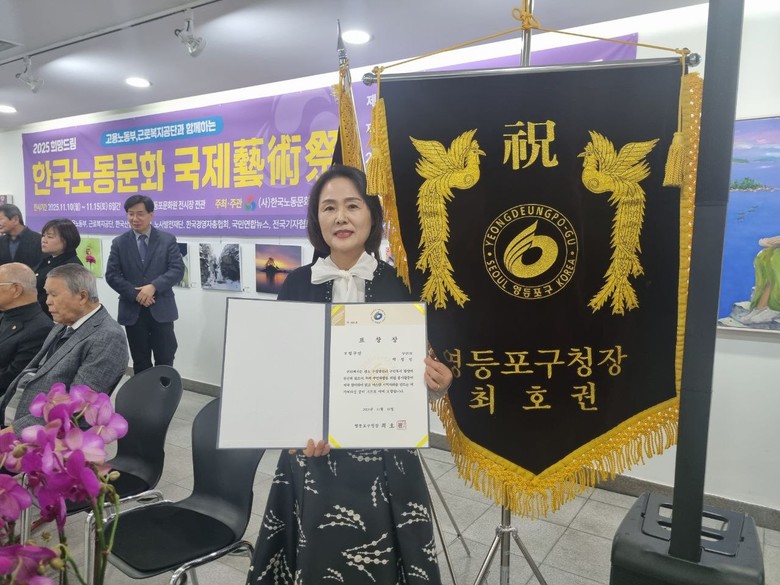 지난 15일 (사)한국노동문화예술협회(이사장 김용수)는 고용노동부 근로복지공단과 함께 「2025 희망드림 한국노동문화 국제예술제」 전시회가 영등포문화원 전시장 전관에서 초청행사 및 시상식을 끝으로 마무리 했다.