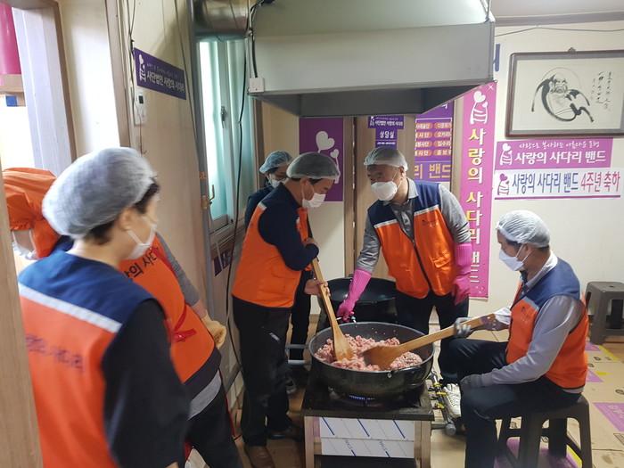 이날 봉사에는 유희자 단장을 비롯해서 고대석 김호현 김호찬 박원홍 오명옥 전숙자 회원들이 대덕구 중리동에 위치한 사랑의 사다리 밴드 사무실에서 볶음 고추장을 만든 후 열매, 해오름, 행복이음, 로뎀나무, 포도나무 엘림특수교육원 6곳에 20개씩 전달을 하였다.