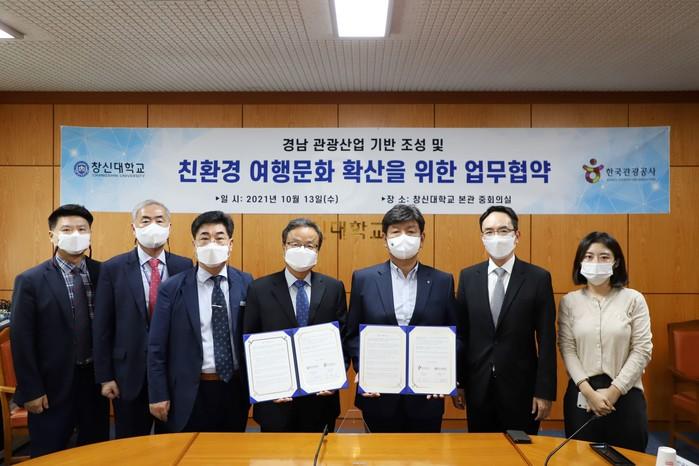 이번 업무협약은 시대적 변화에 맞춰 글로컬 관광을 추진 중인 한국관광공사가 창신대학교와 친환경 관광콘텐츠 개발 및 기후변화 대응 여행문화 확산과 관광 분야 인력양성 프로그램 개발 등에 있어 창신대학교와 협력을 하는 것을 목표로 한다. 양 기관은 이번 협약식을 통해 ▲친환경 관광콘텐츠 개발 ▲관광 전문 인력 양성 ▲경남 관광산업 기반 조성 ▲지역 관광 역량 강화 등을 위해 지속적인 교류를 약속하였다.