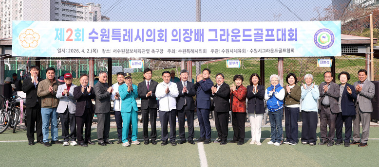 [수원시 세계타임즈=송민수 기자] 수원특례시의회(의장 이재식)는 2일 서수원칠보체육관 인조잔디구장에서 「제2회 수원특례시의회 의장배 그라운드골프대회」를 개최했다.