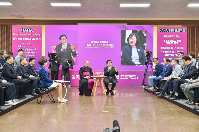 이번 회의에는 박 시장과 손삼석 천주교 부산 교구장을 비롯해 하하(HAHA) 캠퍼스 에듀프로그램 및 50+생애재설계대학 수강생 등이 참석했다.