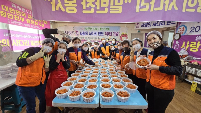 사랑의 사다리 봉사단체는 현재 일만명 회원으로 구성되 있으며 회원들의 따뜻한 후원금으로 대전시 5개구 소외계층을 위해서 매월 15회~20회 다양한 봉사를 꾸준히 하고 있으며 작년에는 총 225회 봉사로 12,000명에게 따뜻한 사랑을 실천 하였다.