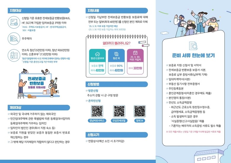 - 보증료 최대 40만 원 지원... 전세금 미반환 피해 예방
