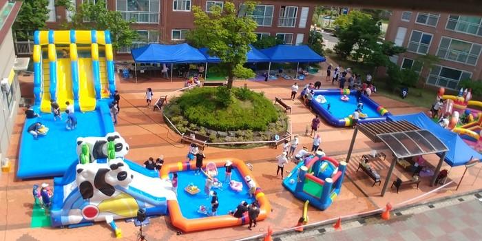 -휴가 가지 못한 아파트 입주자들 위해 물놀이 시설