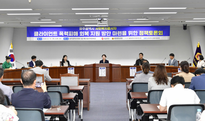 이번 토론회는 광주시의회, 광주시, (재)광주사회서비스원, 광주사회복지협의회가 공동주최했으며, 사회복지시설 종사자들의 폭력 피해 실태를 알리고, 회복과 예방을 위한 제도적 지원 방안을 모색하고자 마련됐다.