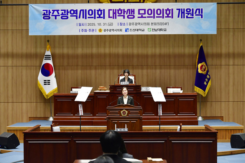 이어 조선대학교 정치외교학과 강수정 학과장은 “모의의회는 이름만 ‘모의’일 뿐, 그 안에서 이뤄지는 고민과 대화, 협력은 결코 가상이 아니다”라며 “여러분이 오늘 시작하는 이 경험이 민주주의의 핵심인 대화와 참여를 몸으로 익히는 계기가 되길 바란다”고 격려했다.