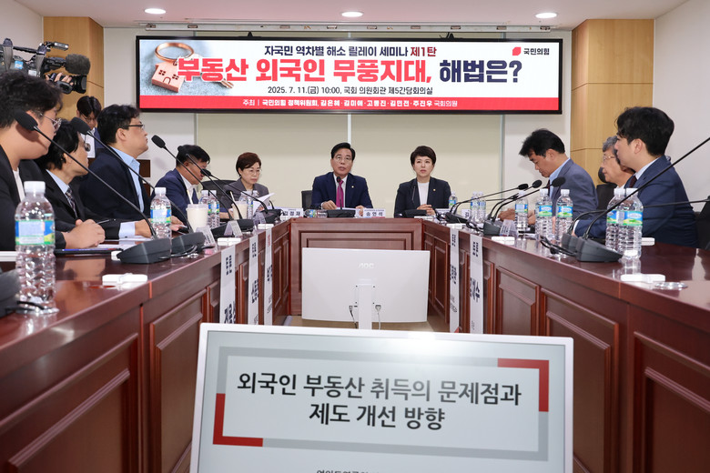 「 자국민 역차별 해소 릴레이 세미나 ’ 제 1 탄 – 부동산 외국인 무풍지대 , 해법은 ? 」 을 개최했다 .