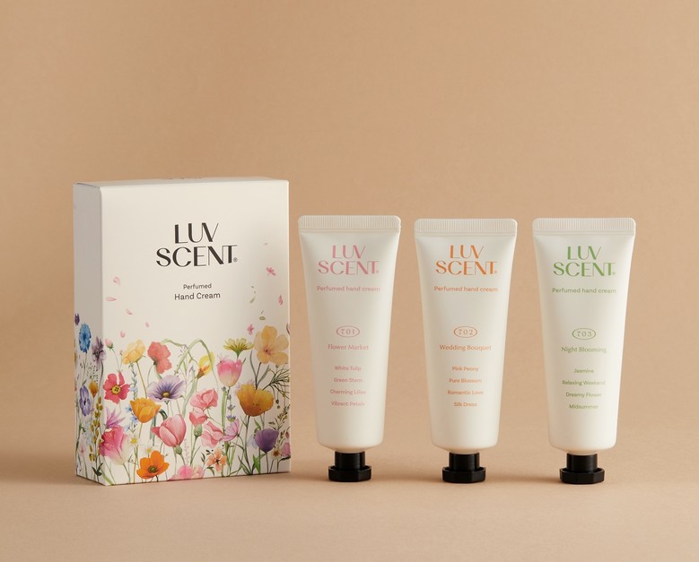 럽센트 생화향 퍼퓸 핸드크림은 △싱그러운 느낌의 ‘플라워마켓 화이트 튤립 향’ △청초한 이미지의 ‘웨딩부케 핑크 피오니 향’ △향긋한 ‘나이트 블루밍 자스민 향’ 등 총 3가지 향을 하나에 담은 기프트 세트로 출시해 소중한 이에게 선물하기 좋다.