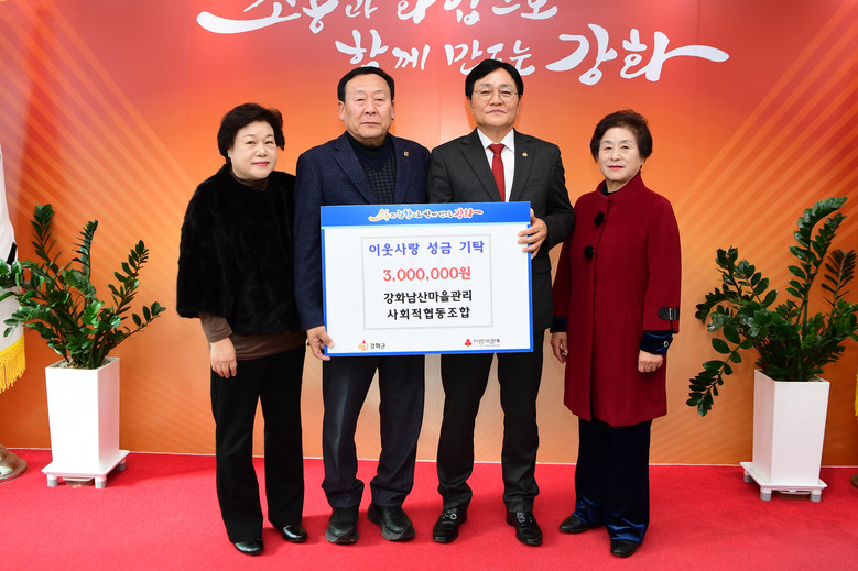 [강화군 세계타임즈=심하린 기자] 강화군(군수 박용철)은 강화남산마을관리 사회적협동조합(대표이사 김상배)이 지난 8일 사회복지공동모금회를 통해 300만 원의 성금을 강화군에 기탁했다고 밝혔다.