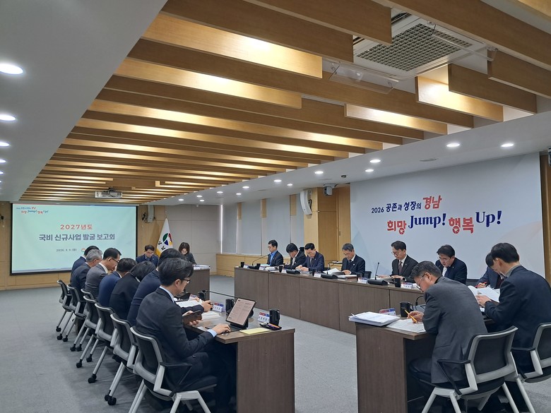 - 4월 중앙부처 신청... 8월 정부안·연말 국회까지 총력전 [세계타임즈=경남 최성룡 기자] 경상남도(도지사 박완수)는 9일 도청 도정회의실에서 ‘2027년도 국비 신규사업 발굴 보고회’를 열고 본격적인 국비예산 확보 활동에 착수했다. 이날 보고회에는 박일웅 행정부지사와 김명주 경제부지사를 비롯해 전 실국본부장이 참석해 신규 발굴 사업과 대응 전략을 점검했다.