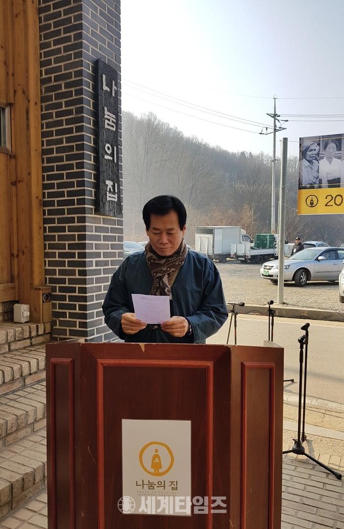 한옥순 회장은"꽃다운 나이에 이분들이 끌려가서 당한 고통은 정말이지 상상을 초월하는 지옥 같은 성노예 생활을 강요당한 잊지 못할 가슴 아픈 우리 민족의 아픔이자 여성들의 수난사 라면"가슴 아프지만 잊지 말아야 할 우리의 역사를 기억하고 기록해 이런 역사가 반복되지 않도록 정부에서 노력하는 것이 중요합니다"라면 이곳 할머니들이 겪었던 고통스러운 역사적 사실을 모두 잊고 나눔의 집에서 건강하게 편안히 쉬는 생활 하시길를 바란다"며 "국민들이 언제나 함께 있다는 사실을 잊지 마시고 행복한 생활이 되세요"라고 말했다 .