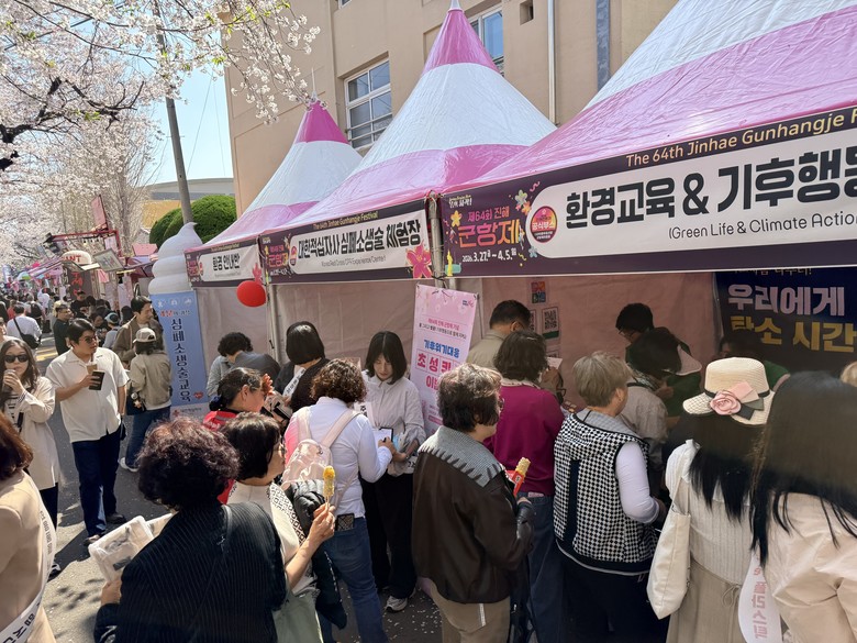 이번 캠페인은 진해 군항제를 방문한 관광객과 도민들에게 일회용품 사용을 줄이고, 올바른 분리배출을 통해 재사용과 재활용을 생활 속에서 실천하도록 유도하기 위해 마련됐다.